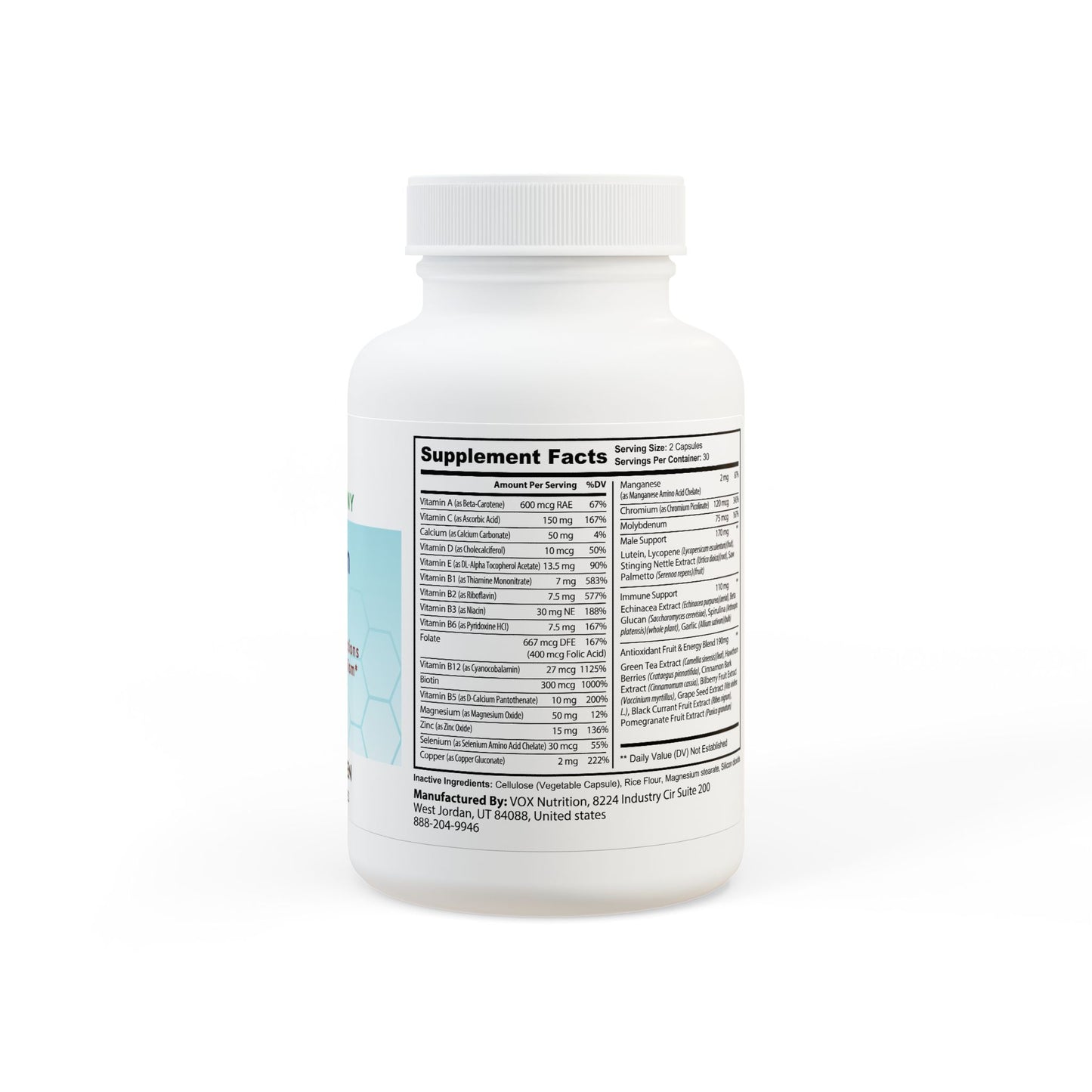 The Multivitamin Supplement for Men is designed to bridge the nutritional gap in busy lifestyles by providing the perfect amount of vitamins, minerals, antioxidants, and herbs.